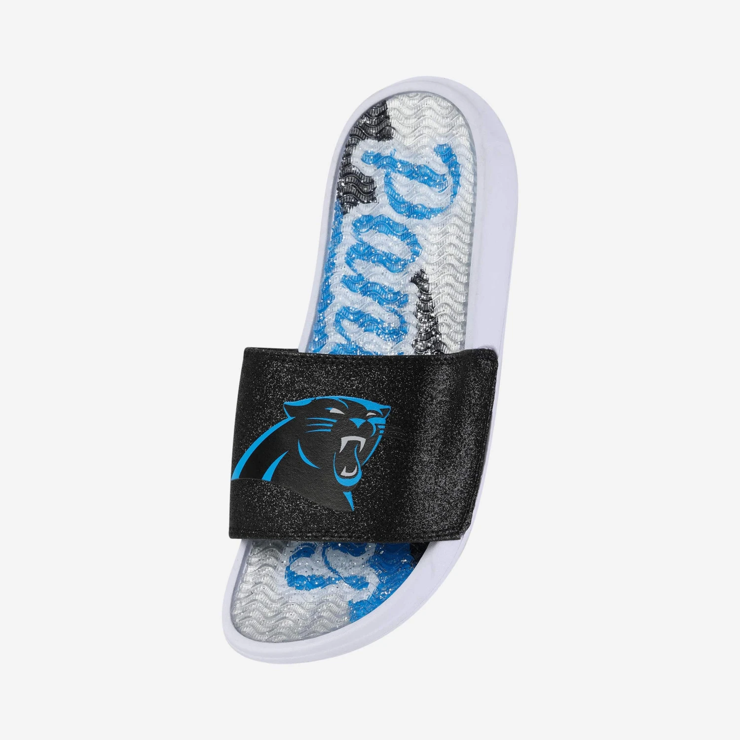 Fan footwear that will make you the pick of the glitter. Let your team spirit shine with every step in these Carolina Panthers Women’s Glitter Gel Slides!