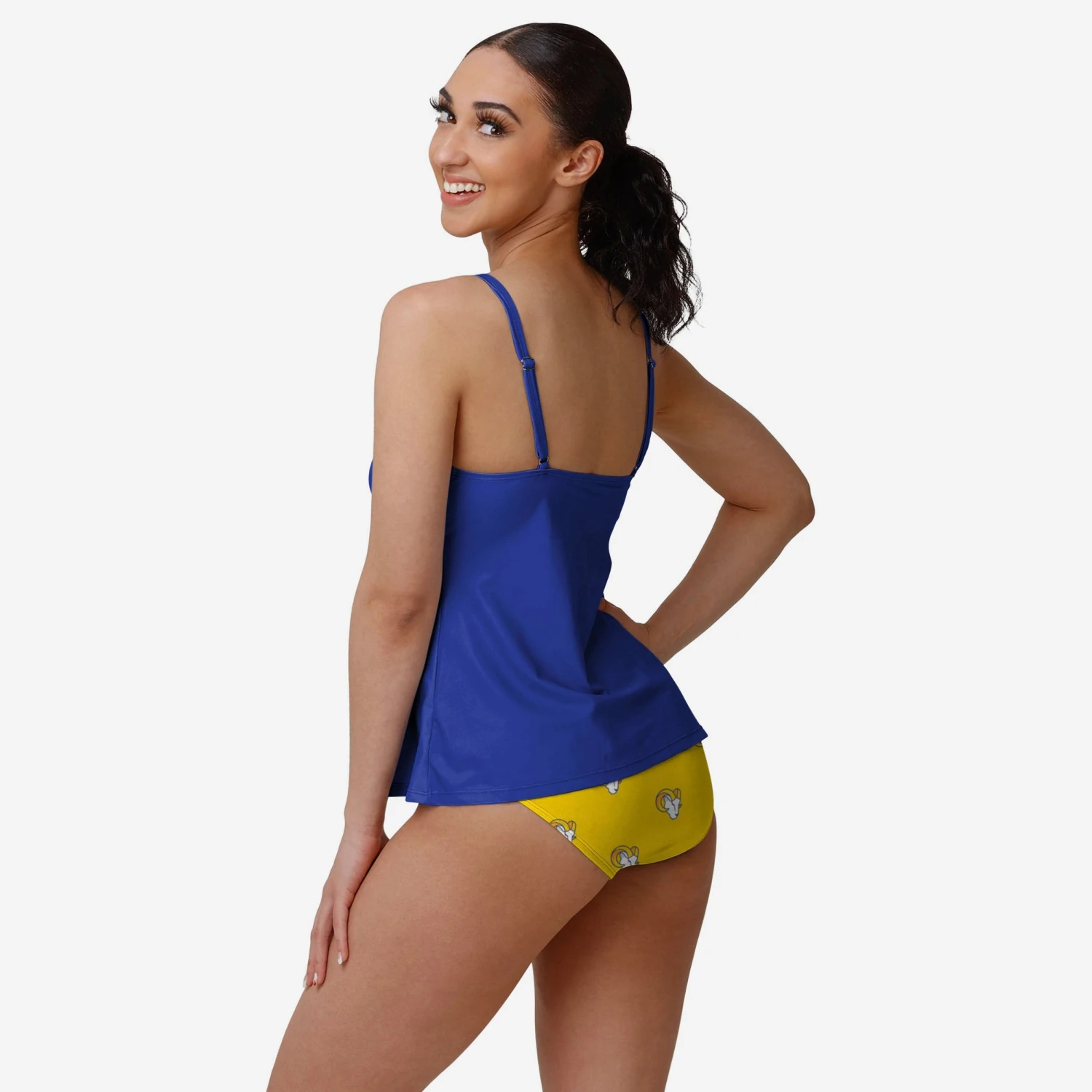 Turn the heat up on your fashion game while you keep cool by the pool in this Los Angeles Rams Women’s Summertime Solid Tankini!